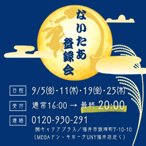 【9月開催】お仕事の後でも間に合う!ナイター登録会のお知らせ【最終受付20:00】