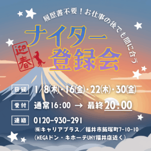 【1月開催】お仕事の後でも間に合う!ナイター登録会のお知らせ【最終受付20:00】